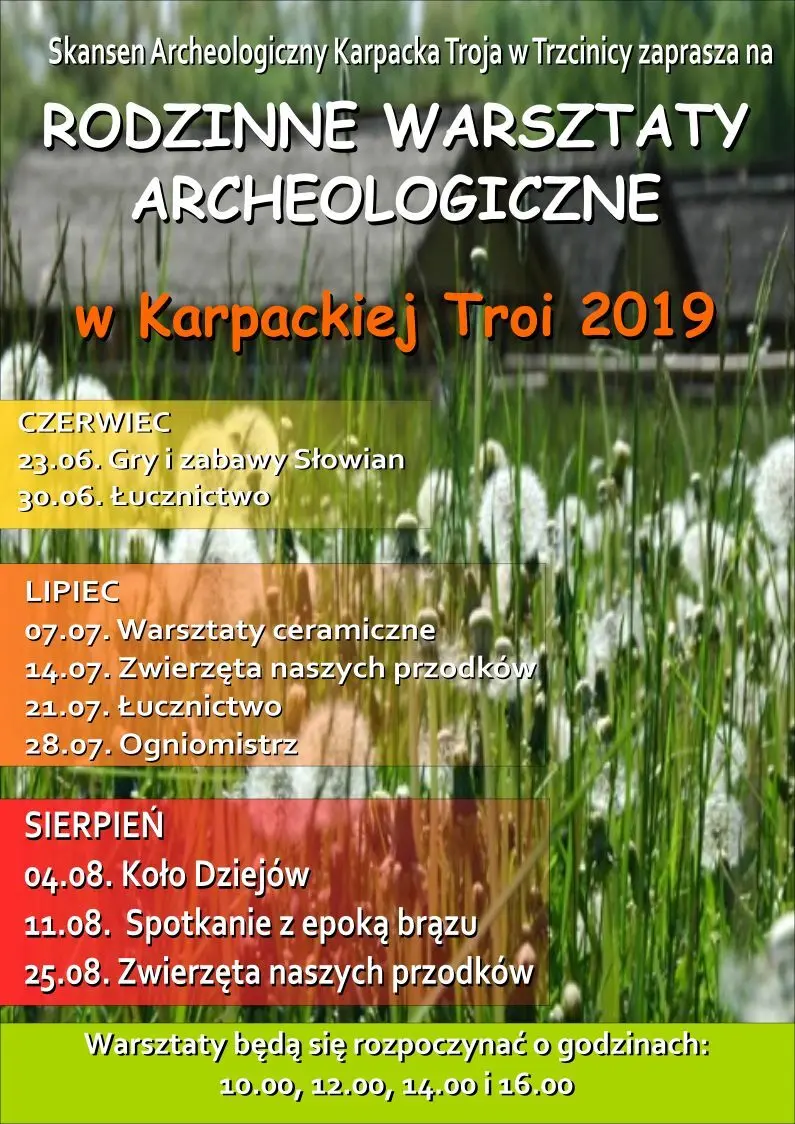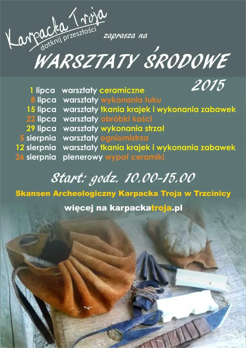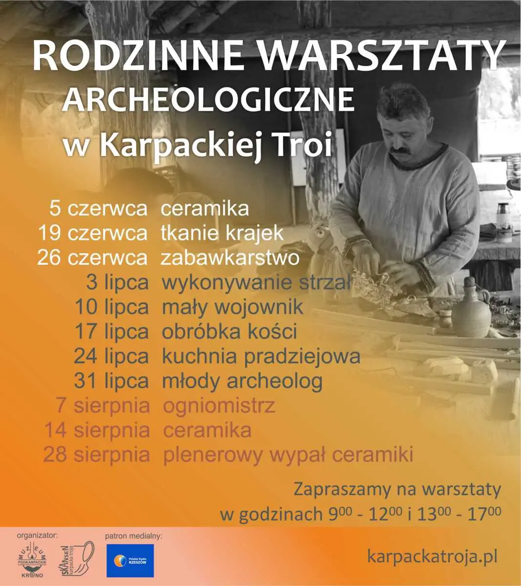 To cykl spotkań realizowanych w Skansenie w każdą niedzielę czerwca, lipca i sierpnia. Podczas warsztatów uczestnicy mają niepowtarzalną okazję poznania różnego rodzaju rzemiosł pradziejowych i wczesnośredniowiecznych, a ich szeroka tematyka pozwala każdemu wybrać coś dla siebie. Warsztaty dedykowane są wszystkim grupom wiekowym, zapraszamy szczególnie rodziny z dziećmi.